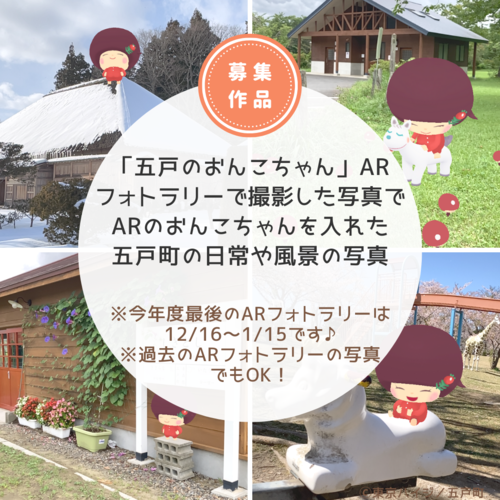 五戸町では令和3年度から「五戸のおんこちゃん」ARフォトラリーを開催しています。ARのおんこちゃんをもっと楽しんでほしいという想いから、ARフォトコンテストも開催しています!